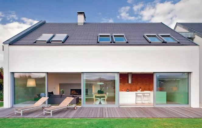Основното фасадно покритие на тези проекти е бяла мазилка. Обикновен материал и основен, на пръв поглед незабележим цвят отличават къщата от заобикалящата зеленина и други сгради. Бялата фасада прави семплото тяло на къщата още по-изразително.Хваща окото отдалече. Неразделен елемент от градинската фасада често са големите прозорци, чиито широки плъзгащи се крила през лятото престават да бъдат бариера между градината и интериора. Когато се съпоставят един до друг, те създават впечатляваща остъклена лента, която покрива почти цялата фасада. Интериорът на къщата също се превръща в декорация отвън - колкото по-цветен и изпълнен с живот, толкова по-добре допълва готините, минималистични фасади.