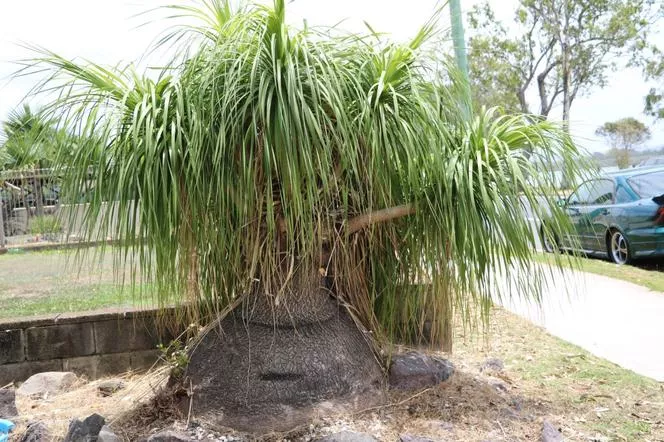 Nolina bent расте в предната градина в Австралия