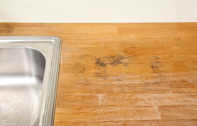 Дървеният бор, клен или бреза е мек, така че този дървен плот лесно абсорбира влагата и може да се повреди бързо. Освен това борът има склонност да посинява, когато е изложен на влага, така че трябва да се грижите много за него.